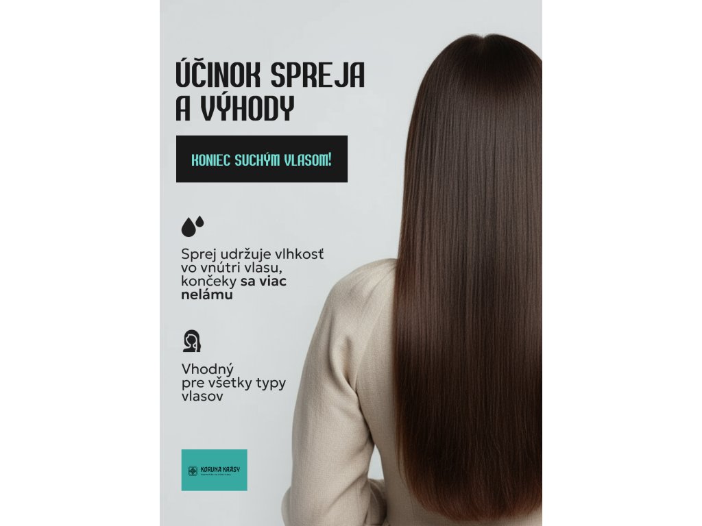 Tento sprej je navrhnutý tak, aby vlasom dodal okamžitú hydratáciu a udržal ju po celý deň. Obsahuje kombináciu zvlhčujúcich látok, proteínov a pantenolu, ktoré zabraňujú vysúšaniu a lámavosti vlasov. Komplex silikónov vytvára ochranný film, ktorý chráni vlasy pred poškodením pri fénovaní a tepelnom stylingu.