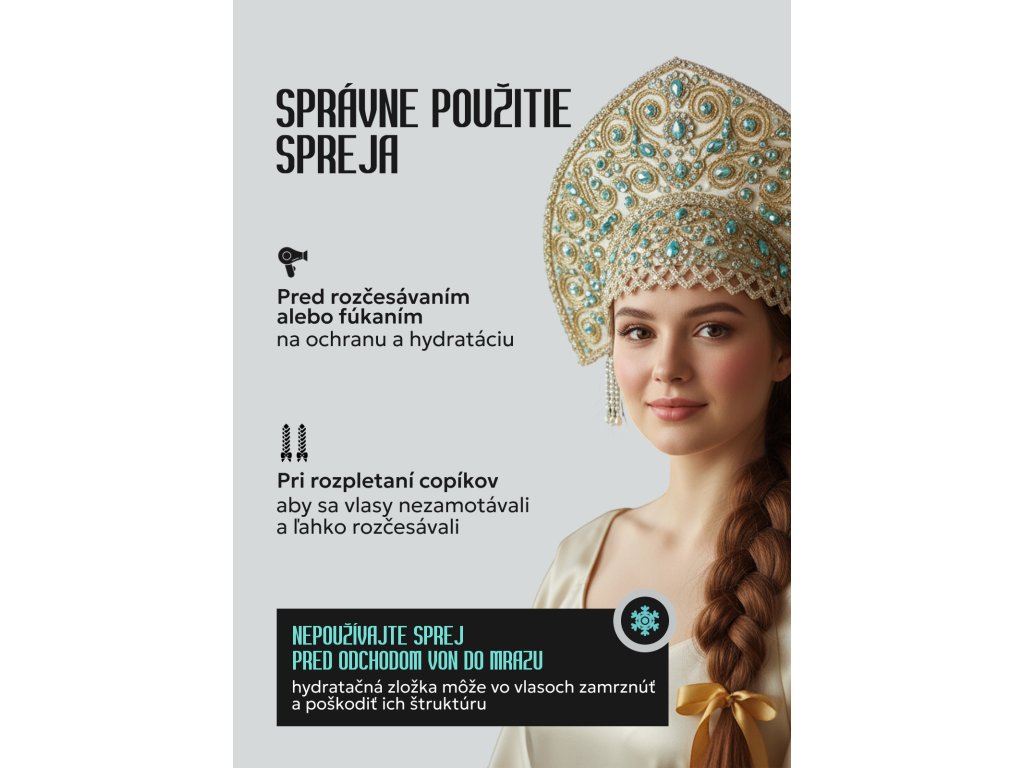 Sprej nepoužívajte pred pobytom vonku pri teplotách pod 0 °C. Hydratačné zložky, ktoré zadržiavajú vlhkosť vo vlasoch, by mohli pri mraze zamŕzať a poškodiť vlasové vlákno. Neodporúča sa aplikovať ho pred dlhým pobytom vonku počas mrazivého počasia, iba v interiéri.